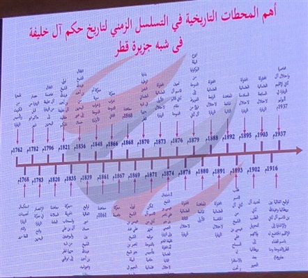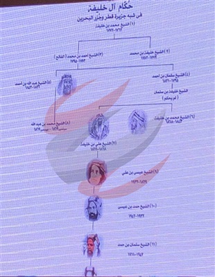 كما نشر المؤتمر وثيقة فيها رسم توضيحي مُفَصَّل لحكام «آل خليفة» في شبه جزيرة قطر وجزر البحرين، ونشر المؤتمر صورةً توضيحيةً لأهم المحطات التاريخية في التسلسل الزمني لتاريخ حكم «آل خليفة» في شبه جزيرة قطر.