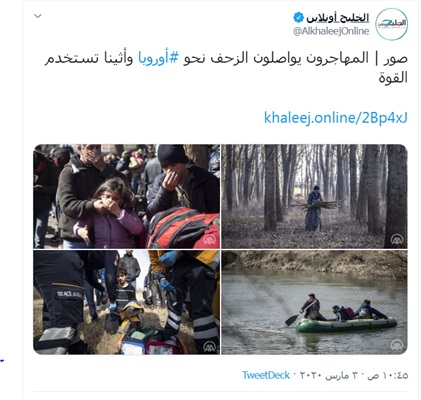 وسرعان ما نقلت وسائل اعلام تركية وعربية قريبة من تركيا كقنوات الجزيرة القطرية، ومكملين والشرق وغيرها من وسائل الاعلام التي يشرف عليها التنظيم الدولي للإخوان وكذلك حسابات على موقاع التواصل الاجتماعي "تويتر" و"انستجرام" و"الفيسبوك"، وغيرها ، لفيديوهات تزعم اعتداء حرس الحدود اليوناني على اللائجين ومنهم في دخول البلاد، دون ان يشيروا إلى ان مواثيق الأمم المتحدة تمنح لليونان والدول حماية حدودها من أي مخاطر في ظل وجود تقارير عن "اندساس" ارهابيين وسط المهاجرين، لتبدو معها قضية اللاجئين ملفاً عند الطلب، يستحضرهُ أردوغان كلما تهاوت طموحاتهُ باستعادة حلم سلطنة الإجرام العثمانية.