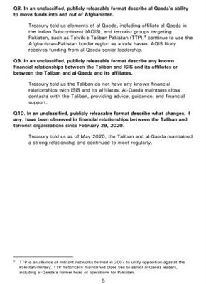 وشدد التقرير (الفقرة 62) على أن الجماعات الإرهابية التي تعمل تحت مظلة حركة طالبان وتتحالف مع داعش في أفغانستان تخطط للوصول إلى تركيا للانضمام إلى الشتات المحلي الموالي لتنظيم الدولة "داعش" في آسيا الوسطى.