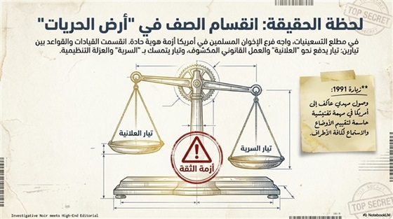 واليوم نواصلُ مع تقييم مهدي عاكف للأوضاع في فرع الإخوان بأمريكا، عقب زيارته الشهيرة لها عام 1991، فبعد استماعه لكافة آراء قيادات الفرع من مؤيدين ومعارضين لفكرة العلانية، لم يكن التقريرُ مجردَ ملاحظاتٍ إدارية، بل كان “تشخيصًا تنظيميًا” لأزمةٍ داخلية في قلب الولايات المتحدة.