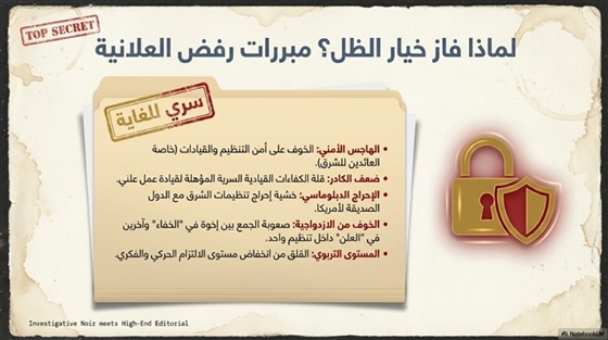 • صعوبة الجمع بين إخوة يعملون بشكلٍ سريٍّ وآخرين يعملون بشكلٍ علني في تنظيمٍ واحد.