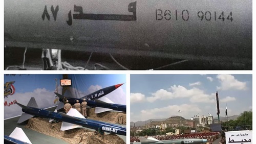ولفت التقرير إلى أن السمات "شبه المتطابقة" بين صاروخ "صقر" أرض جو الذي استخدمه الحوثيون لمهاجمة طائرات أمريكية بدون طيار بالقرب من اليمن وفي خليج عمان، والصاروخ 358 الإيراني.