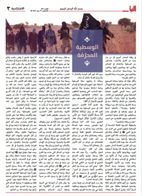 تطل علينا افتتاحية صحيفة "النبأ" في عددها (529) الصادر مساء الخميس 8 يناير 2026، بشن غارة فكرية منظمة على أحد أقدس مفاهيم الإسلام المعاصر وأكثرها محورية: "الوسطية". ففي اللحظة التي يسعى فيها الوعي الإسلامي العام لاستعادة هذا المصطلح كجسر للتعايش والاستقرار، يحاول التنظيم عبر هذا النص تحويله إلى "خندق" للصدام المسلح وأداة لإقصاء المخالفين. إن هذا الخطاب يتجاوز كونه وعظاً دينياً تقليدياً، ليقف كوثيقة سياسية ونفسية شديدة الخطورة، تعكس محاولة التنظيم اليائسة لترميم شرعيته المتآكلة عبر "سرقة" المصطلحات الجاذبة وإعادة حشوها بمضامين قتالية.