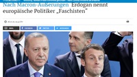 فى محاولة لوقف الشطحات الأردوغانية والهجوم على أوروبا، أعربت ألمانيا عن تضامنها مع فرنسا فى الأزمة المثارة حاليا حول التطرف الديني الذي حذرت منه السلطات الفرنسية، على إثر مقتل مدرس فرنسي بيد متطرف، حاصل على الحماية القانونية بموجب قوانين اللجوء الأوروبية، وأكدت على التضامن الكامل بين كل من برلين وبا المزيد ».