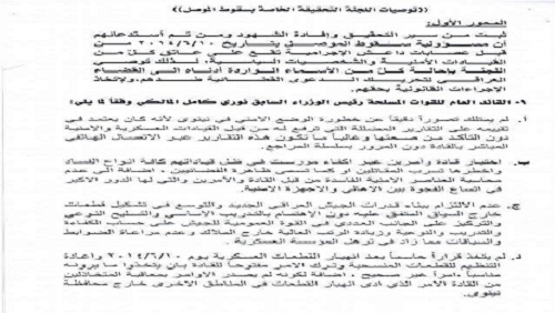 وثائق توصيات اللجنة التحقيقية الخاصة بسقوط الموصل في يد داعش