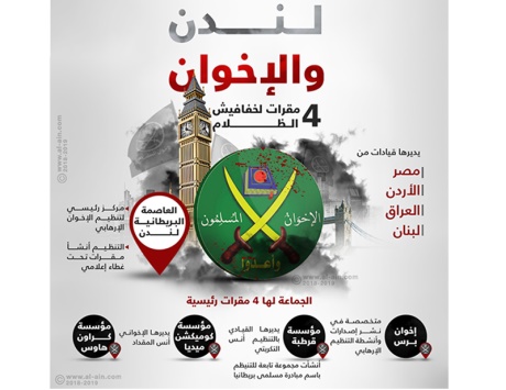 كما أن منير الذي يشرف على نشاط الجماعة ويتولى التنسيق مع القطريين، عمل على إخفاء مراكز الإخوان في لندن عبر تقديمها كمقار إعلامية لا تخص الجماعة، بل مموهة بأسماء شركات وجماعات، ترك مهمة قيادتها لأعضاء من التنظيم العالمي للإخوان من لبنان ومصر والأردن والعراق.