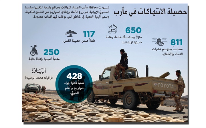 وأوضح مصدر قبلي طلب عدم ذكر اسمه خوفاً من تعرضه لقمع الميليشيا، في تصريح لـ«البيان» أن عشرات المنازل تم تفجيرها وتشريد سكانها منذ اقتحام جماعة الحوثي للمديرية ففي قرية النامرة وحدها، والتي تقع بأطراف المديرية فجر الحوثيين نحو خمسة منازل وحولت القرية الصغيرة بالكامل إلى ركام وثكنات عسكرية.