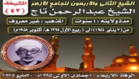 الشيخ الخمسون للجامع الأزهر المشيخة : الخمسون مدة ولايته : 5 سنوات حتى الان من (19 مارس 2010) حتى الان المذهب : غير معروف الوفاة :لا زال حى يرزق . ولد عبد الرحمن القطب النواوي بقرية نواي بمركز ... المزيد ».
