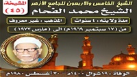 الشيخ الخامس والأربعون للجامع الأزهر المشيخة: الخامسة والأربعون الوفاة: 1400 هـ- 1980م تتناول هذه النافذة، تاريخ مشيخة الأزهر، وتاريخ بطاركة الكنيسة المصرية من خلال التسلسل الزمني.. بغرض ... المزيد ».